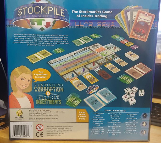 Stockpile es un juego de mesa económico que combina la estrategia tradicional de almacenamiento de existencias de comprar barato, vender caro con varios mecanismos adicionales para crear una experiencia interactiva, atractiva y de ritmo rápido. En Stockpile , los jugadores actúan como inversores del mercado de valores a finales del siglo XX con la esperanza de hacerse rico, y el inversor con más dinero al final del juego es el ganador. Se centra en la idea de que nadie sabe todo sobre el mercado de valores, pero todos saben algo. En el juego, esta filosofía se manifiesta de dos maneras: información privilegiada y reserva.